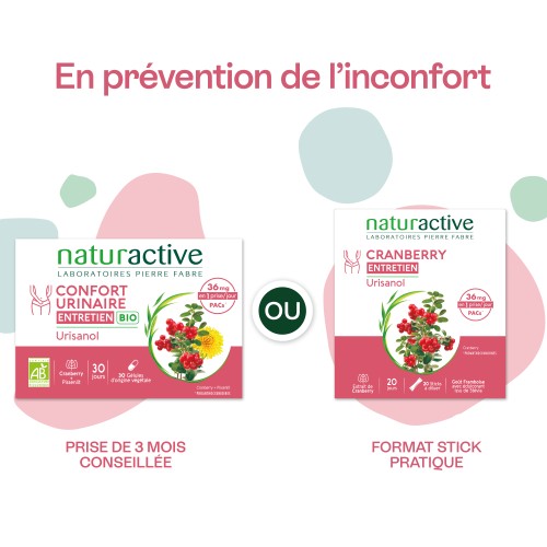 En première intention en cas d’apparition d’inconfort urinaire, toujours consulter son médecin ou son pharmacien.