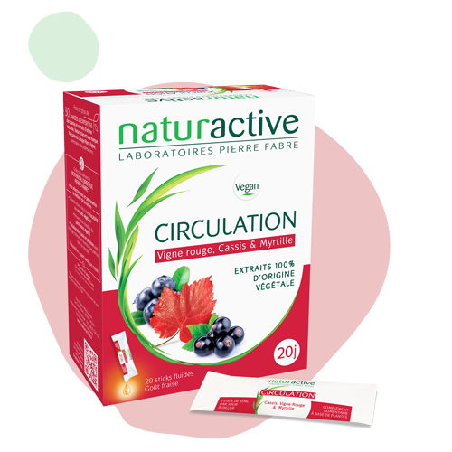 . Extraits concentrés de Vigne rouge, Cassis et Myrtille qui contribuent à maintenir une bonne circulation sanguine pour des jambes légères
