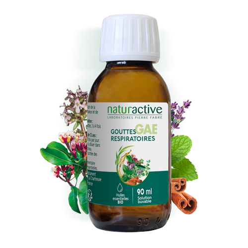 Les Gouttes Respiratoires GAE contiennent 5 huiles essentielles Bio. Cette formule aide à lutter contre les inconforts respiratoires et soutient les défenses immunitaires.