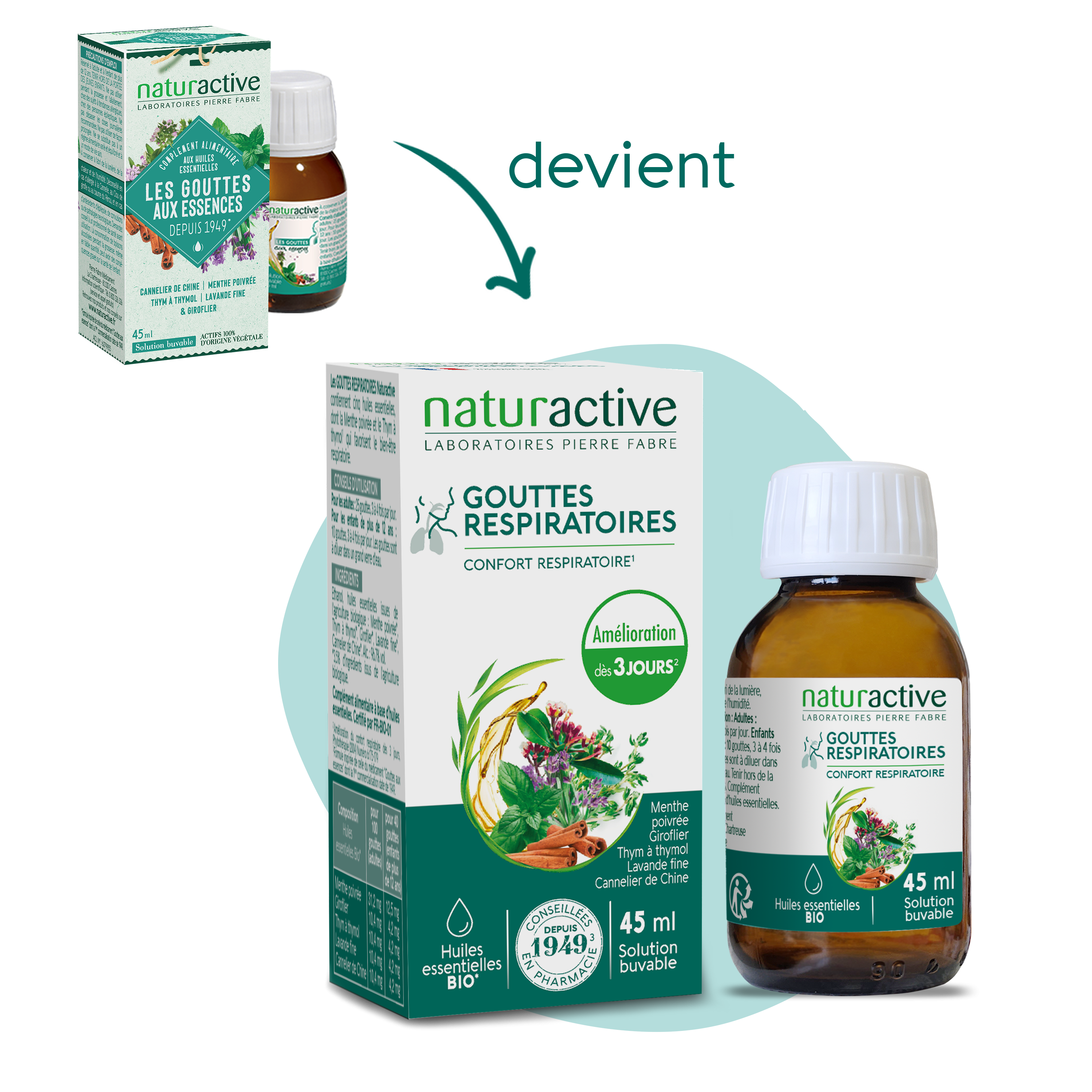 Notre produit Gouttes aux essence devient Gouttes respiratoires ! Il est également disponible en 45ml et 90ml.